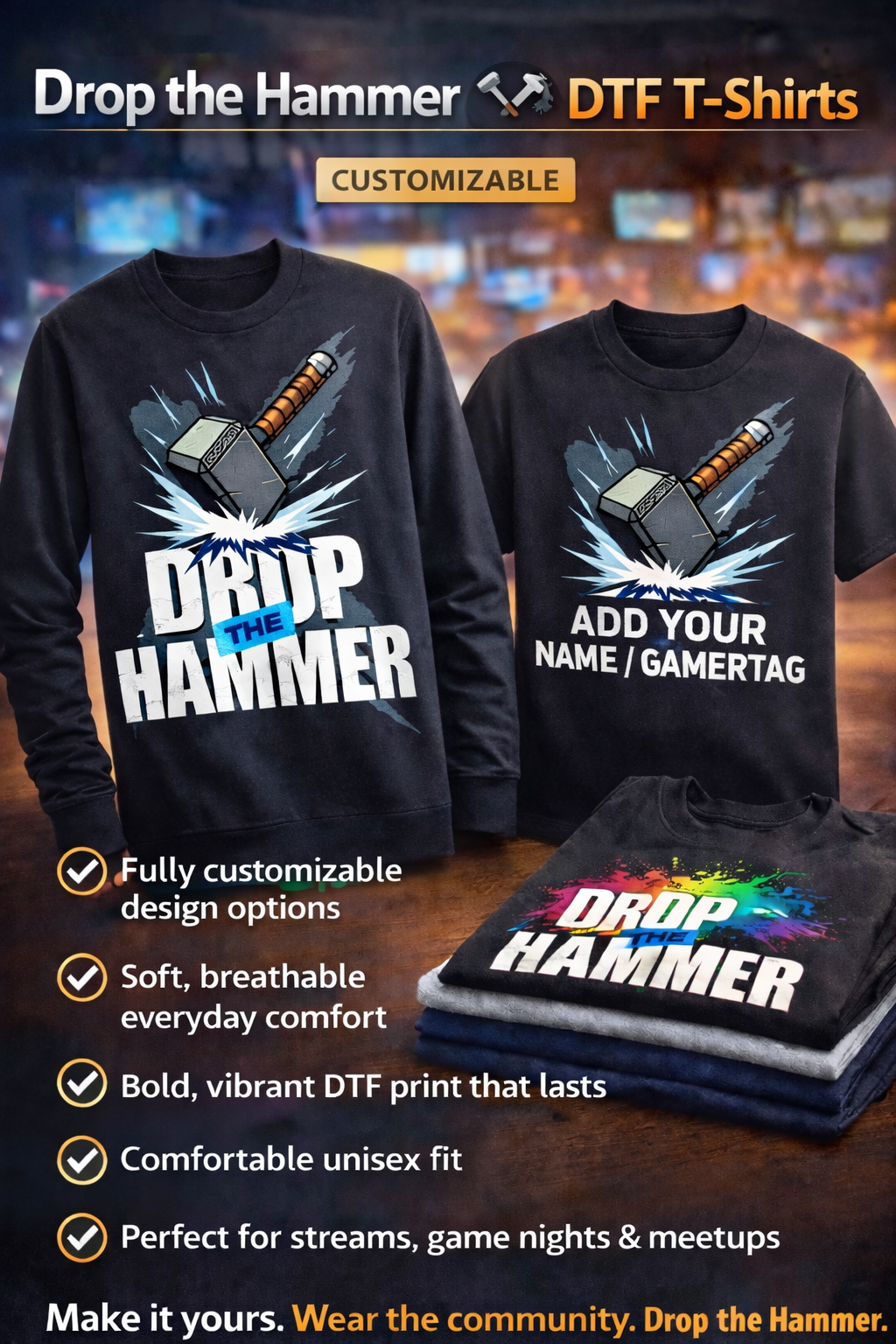 Make it yours. Wear the community. Drop the Hammer.